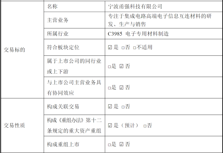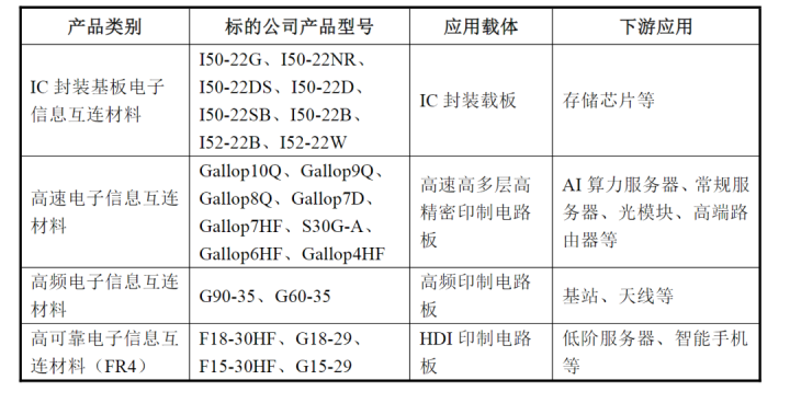 预案显示,甬强科技的产品根据直接应用载体和下游应用领域可主要划分为高端IC封装基板电子信息互连材料、高速电子信息互连材料、高频电子信息互连材料和高可靠电子信息互连材料四大类别。其中,应用于224Gbps的Gallop9Q高速产品正在参与国际头部客户下一代产品的认证;I50系列封装基板材料使用自主研发的技术路径,创新封装基板配方技术和生产工艺,目前已通过国内头部存储企业的技术认证。
